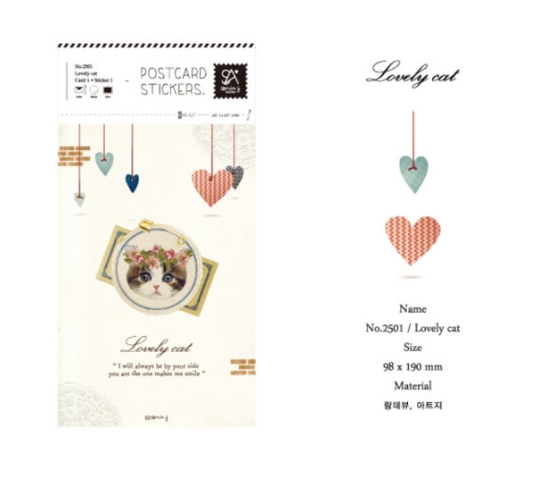 2501 Lovely Cat Postcard Stickers 3ways Korean Sticker Sheet Etsy