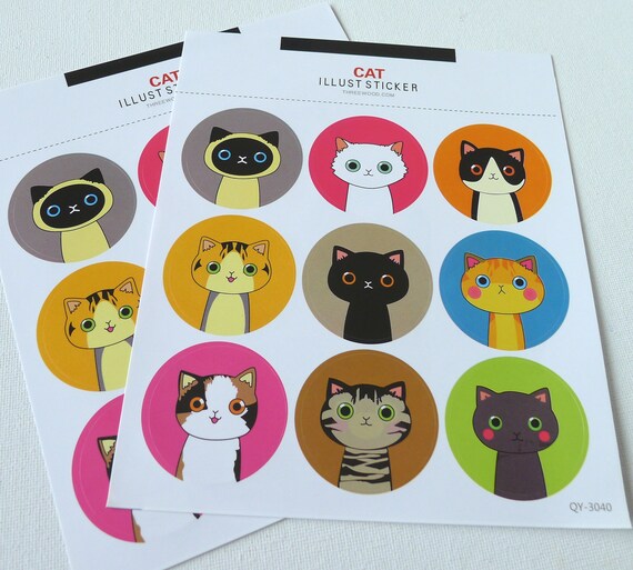 Cute Feline Cat Round Sticker Sheets Set Of 2 Sheets Etsy