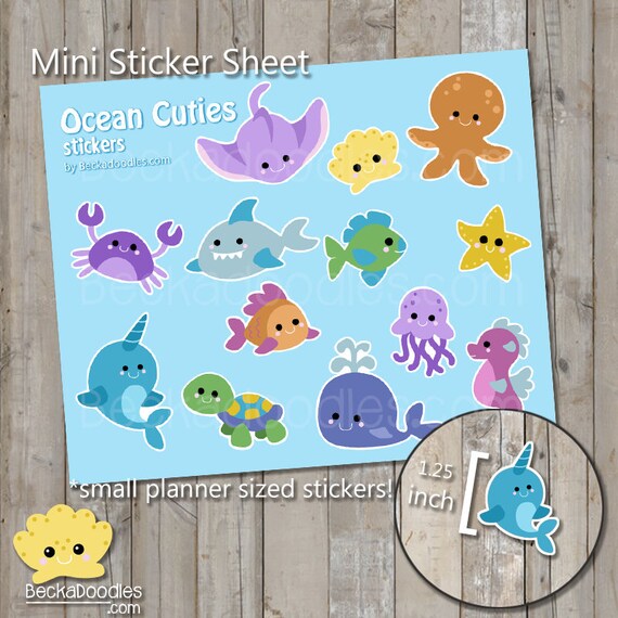 Kawaii Ocean Animals Mini Stickers Planner Sticker Sheets Etsy