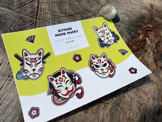 Kitsune Mood Mask A6 Sticker Sheet Etsy