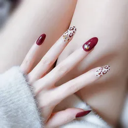 Women Simple Wine Red Color Fake Nails Ladies Pretty Shining Rhinestone Artificial Nails Full Cover Nail Art Tips With Glue False Nails Aliexpress