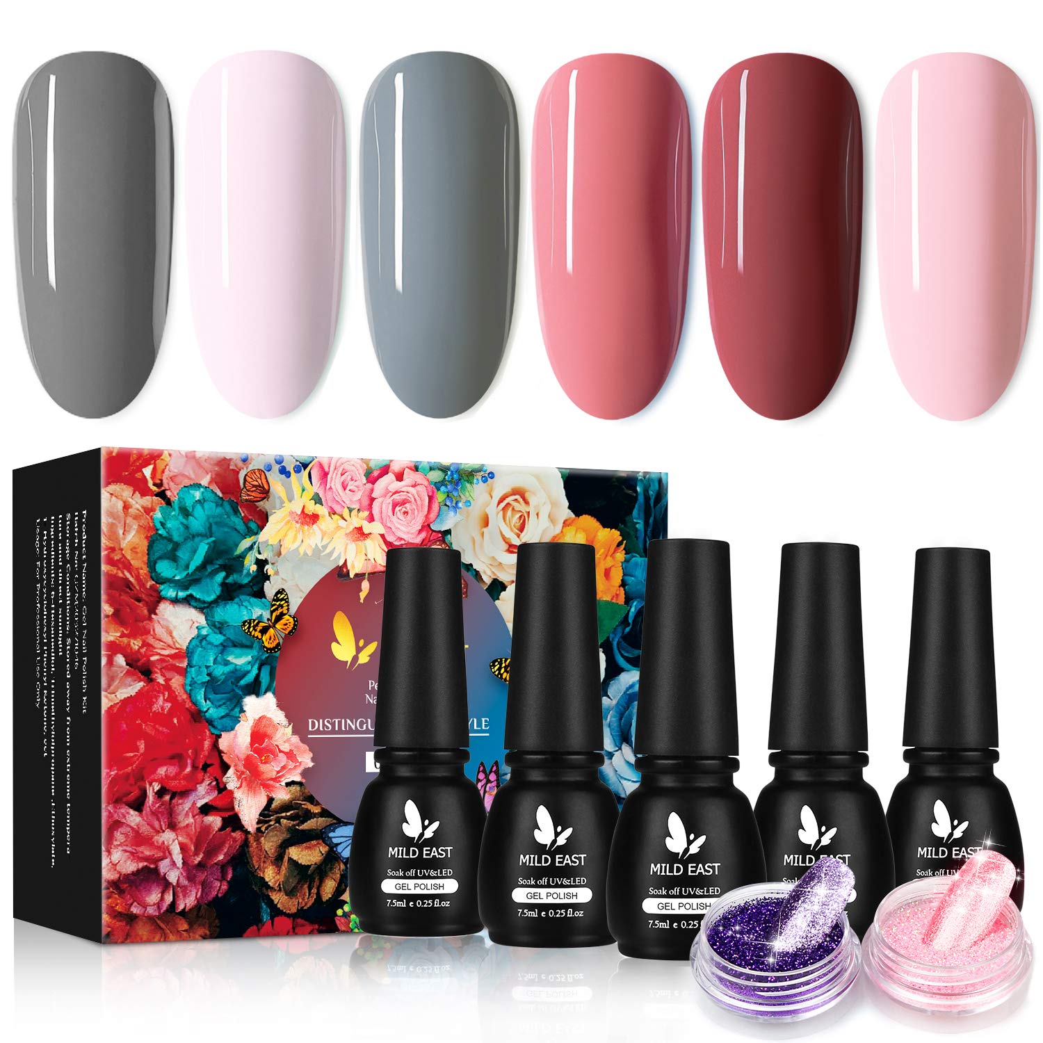 Amazon Com Mild East Gel Nail Polish Kit 6 Colors Nude Gray Pink Gel Nail Polish Uv Gel Glitter Nail Polish With Acrylic Powder Glossy Matte Nail Polish Gift Set For Women