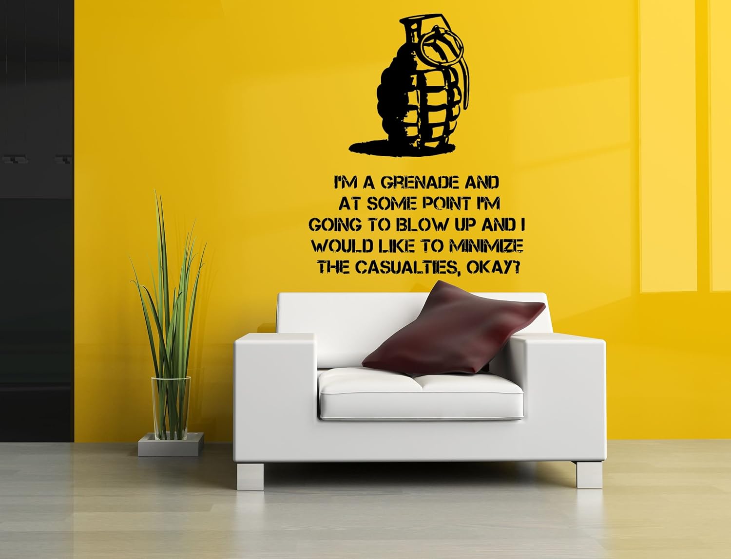 Amazon Com Wall Room Decor Art Vinyl Sticker Mural Decal I Am Grenade Poster Weapon Tnt Dynamite Explosive As2415 Home Kitchen
