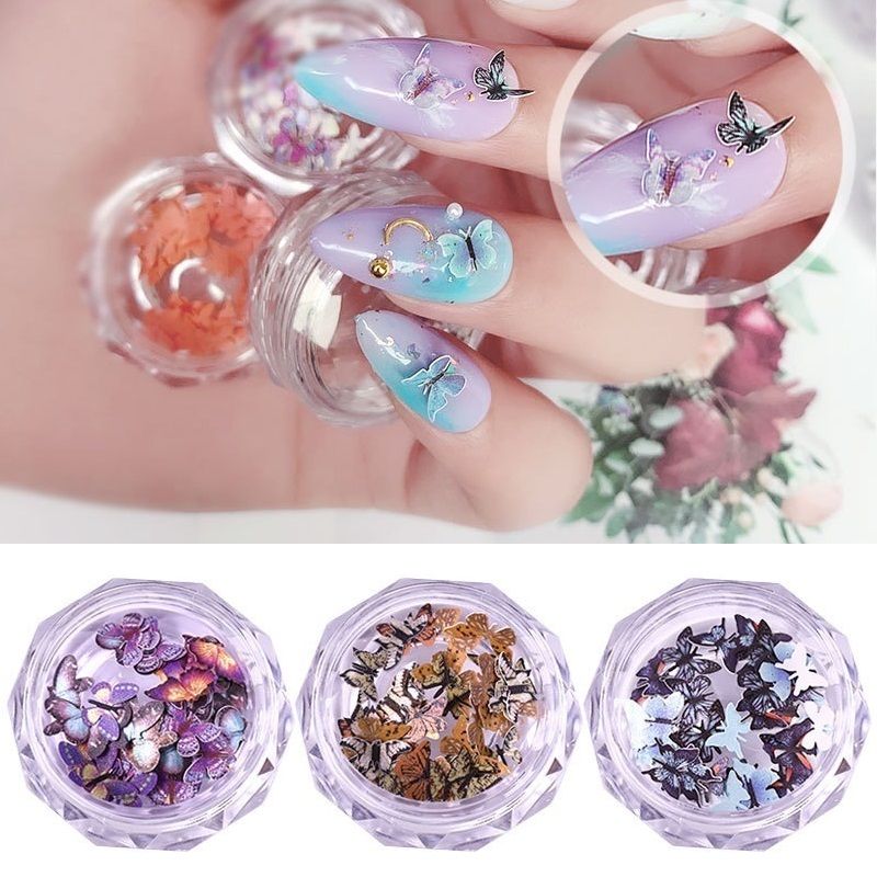 1 Box Mix Size 3d Nail Butterfly Jewelry Resin Butterfly Design Nail Art Decorations Colorful Blue Purple Charms Diy Nail Decals Rhinestones Decorations Aliexpress