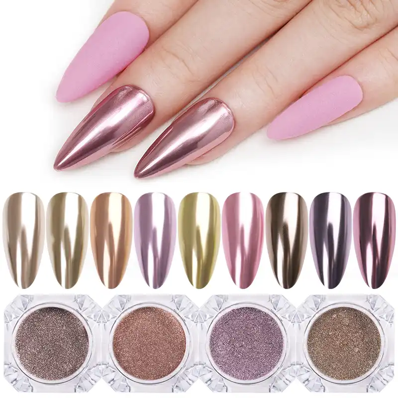0 3g Mirror Metal Effect Nail Glitter Powder Champagne Rose Gold Pink Mixed Colors Chrome Pigment Dust Nail Art Decoration Nail Glitter Aliexpress