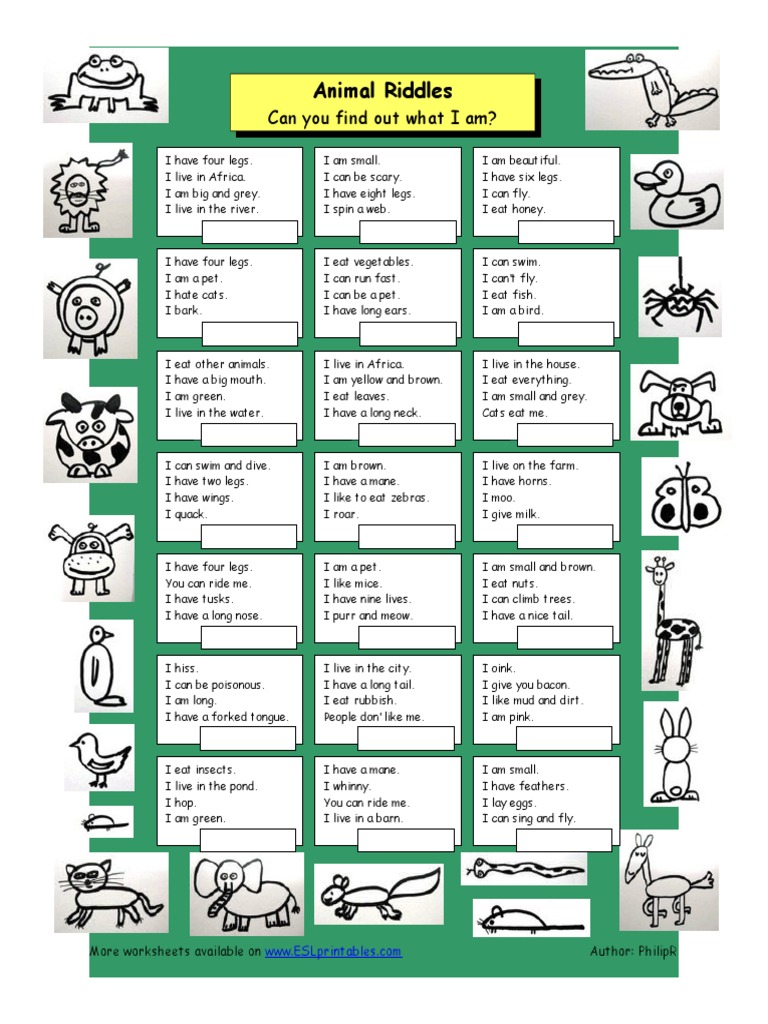 Animal Riddles Esl Worksheet By Anna P