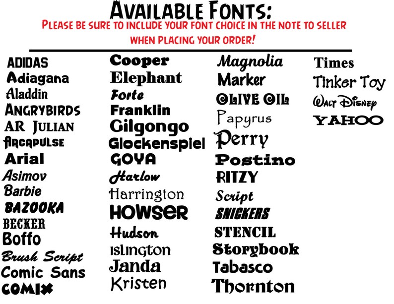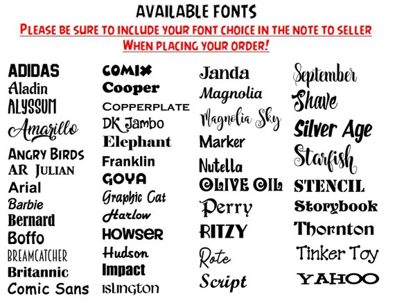 46 out of 5 stars 1731 ratings. Click on any font name to see all the alphabet in that font style. 5 out of 5 stars 1724 699 FREE shipping Bestseller Favorite Add to More colors Specialty fonts- custom name vinyl decal ADHESIVE stickers with hearts or flowers.