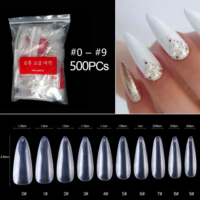 100 500pcs Stiletto Nails False Nails Art Tips Nature Clear Color Full Cover Acrylic Diy Nail Extensions Press On Nails Tools False Nails Aliexpress