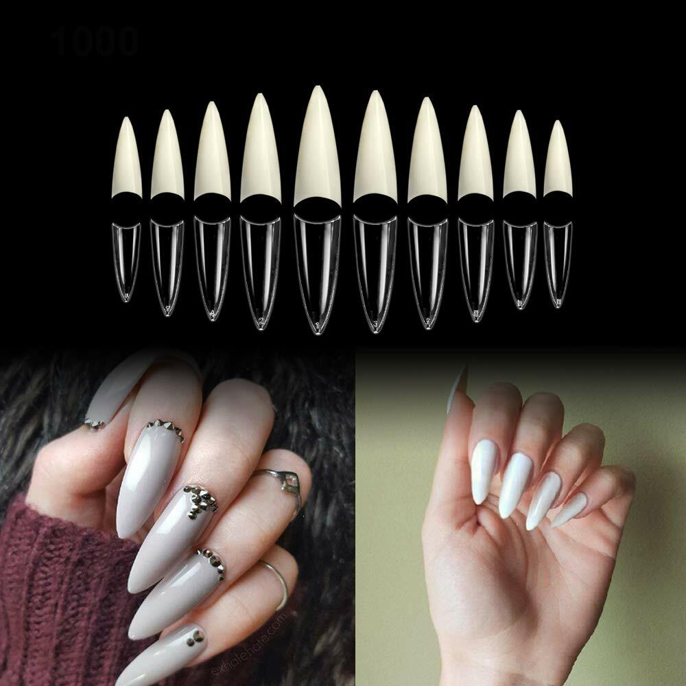 500 Pcs Stiletto Natural Clear Color Sharp Fake Nails Ending False Acrylic Full Cover Nail Art Tips 10 Sizes Perfect Length For Nail Salons And Diy Nail Art At Home Natural Stiletto Nail Tips