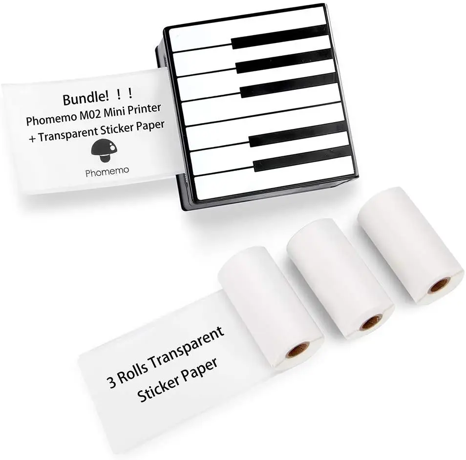 Work Compatible With Ios Study Notes Art Creation Phomemo M02 Mini Printer Bluetooth Thermal Photo Printer With 3 Rolls Transparent Sticker Paper Android For Plan Journal Gift Receipt Printers Office Products