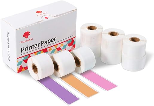 Amazon Com Phomemo Colorful Thermal Sticker Paper For Phomemo M02 M02 Pro M02s M03 Mini Printer Black Character On Purpple Rose Orange 50mm X 3 5m Diameter 30mm 3 Rolls Office Products
