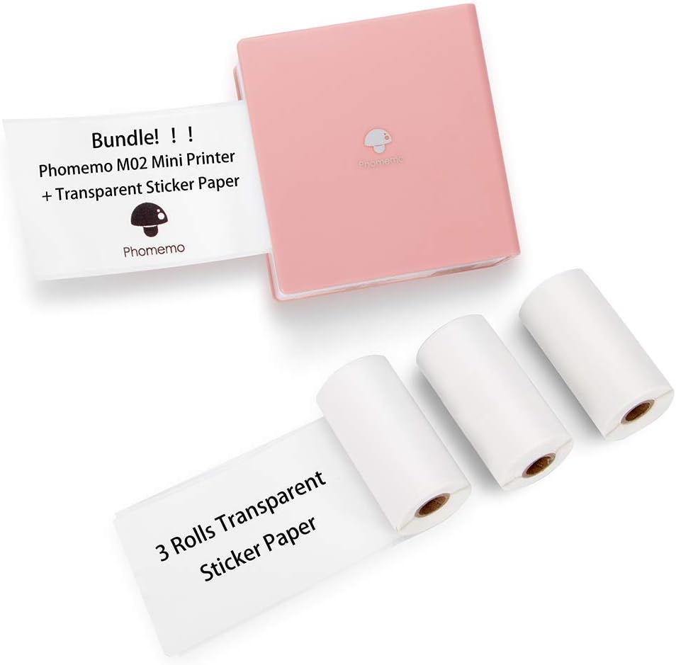 Amazon Com Phomemo M02 Mini Thermal Printer Bluetooth Thermal Photo Printer With 3 Rolls Transparent Sticker Paper Compatible With Ios Android For Plan Journal Study Notes Art Creation Work Gift Electronics