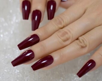 Dark Red Nails Coffin Shape Nail And Manicure Trends