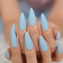 Sky Blue Stiletto Salon Matte False Nails Diy Art Long Coffin Salon Fake Nails 10 Colors For Choose 24pcs False Nails Aliexpress