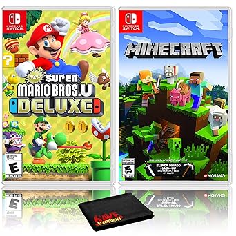 Amazon Com New Super Mario Bros U Deluxe Minecraft Two Game Bundle Nintendo Switch Video Games