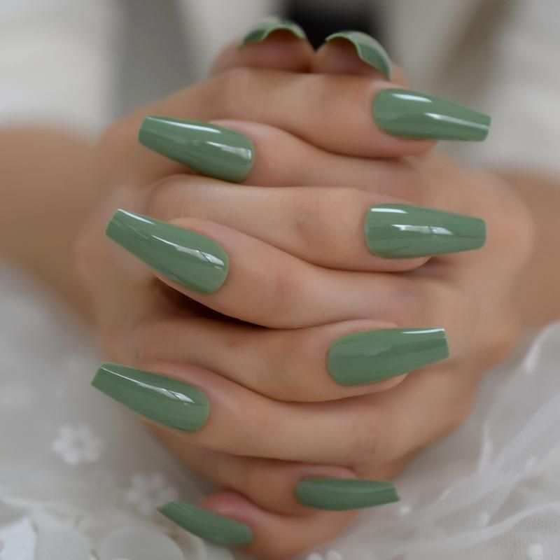 Tapered Medium Long Ballerina Nail Solid Color Uv Gelnails Cream Green Beautiful Designed Fingernails 24 False Nails Aliexpress