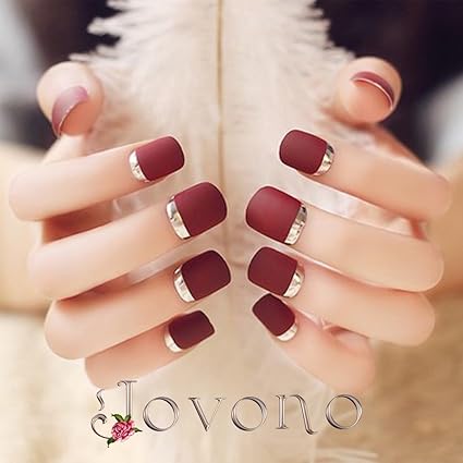 Jovono Short Bling False Nail Tips 24pcs Natural Wine Red Elegant Touch French Manicure Fake Nails With Glue Full Cover Length Nails Art False Nails No Glue Amazon Co Uk Beauty